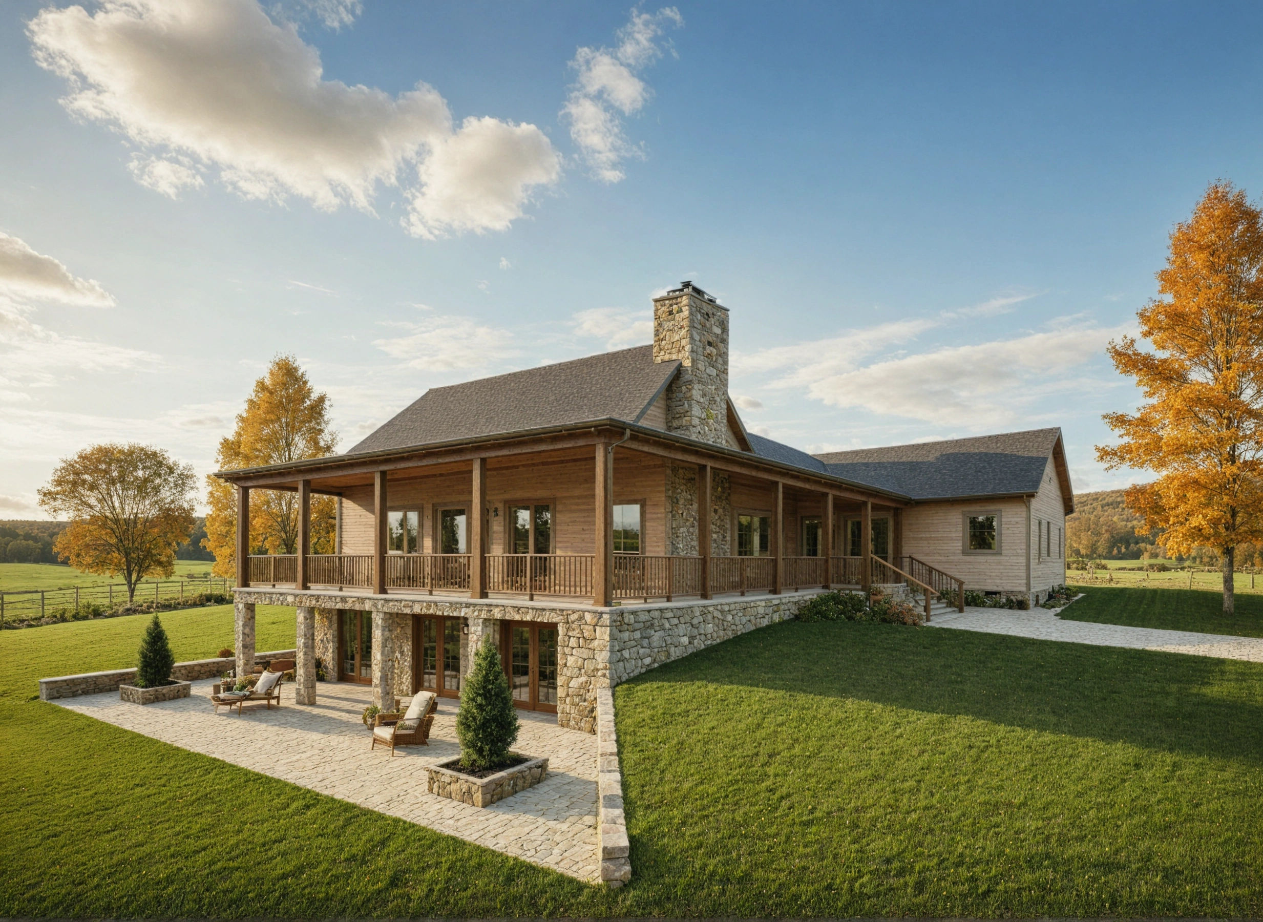 This is a 3500sf ranch style house located in rural Kansas. There is a full walk out basement with the option of adding another bath or a theater in the basement spaces. The house was placed on the site to take advantage of the owners preferred view onto his property.
